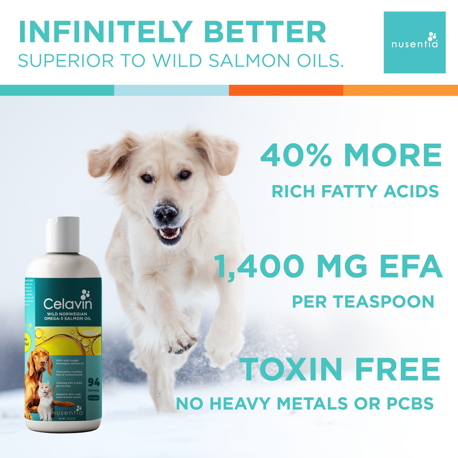 Produced in Norway in one of the world's only pharmaceutical licensed facilities, Celavin is the higest quality fish oil you can buy for your pet. Celavin is third party tested to be free of contaminants, and, proprietary detoxification technology removes toxins, odors and bad tastes, ensuring that your pet will enjoy all the health benefits of concentrated DHA and EPA essential fatty acids without harmful contaminants.